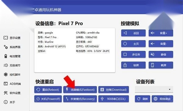 进入搞机工具箱,点击线刷模式选项自动进入Fastboot。