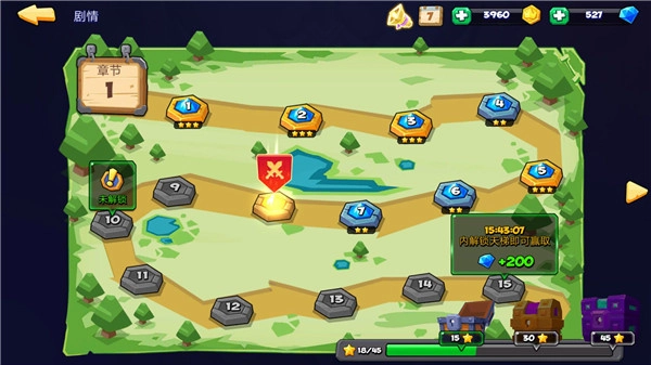 关卡挑战奖励金币和钻石,商店兑换道具,但重复刷关可能枯燥。