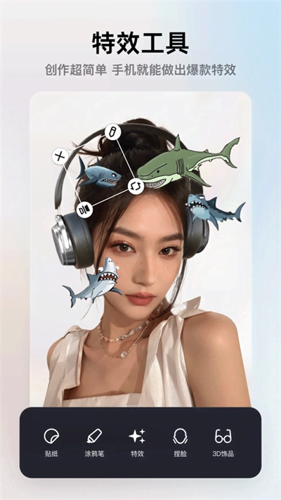 过滤多样化,快速提供所需过滤器。特效工具丰富,一键创建喜爱效果。实时特效数量充足,满足各类需求。
