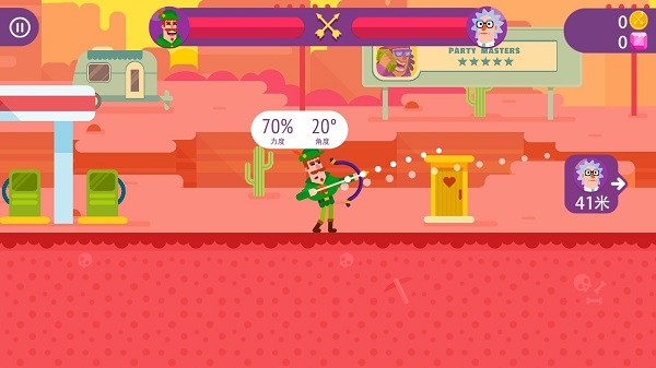 《弓箭手们》是一款全球知名的2D动作射击游戏,其国服版本曾被命名为《冷血射手》。这款游戏以其清新卡通的明亮画面与“冷血”主题形成鲜明对比,创造出一种独特的反差萌感。在游戏中,玩家需要掌握基本的投射技巧,考虑到重力的影响,在每个回合中你都必须调整角度和力度,以确保角色手中的武器能够准确击中敌人。