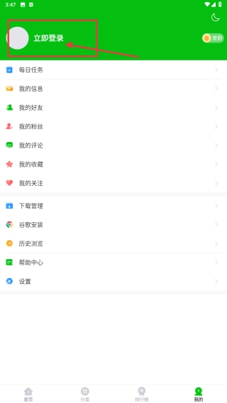 2、进入个人中心后,点击“立即登录”按钮,然后填写登录信息。