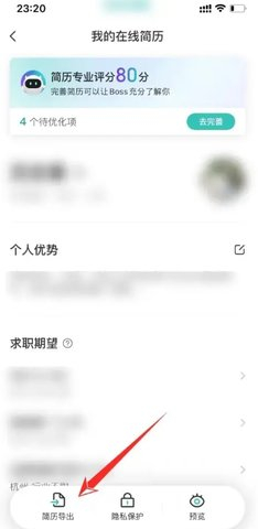 在“我的在线简历”页面中,找到页面下方的【简历导出】按钮并点击。