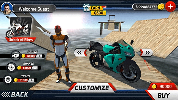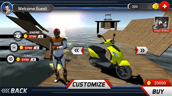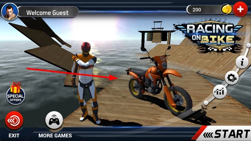 1. 启动游戏点击屏幕进入主界面,通过左右切换按钮挑选初始摩托车型号。
