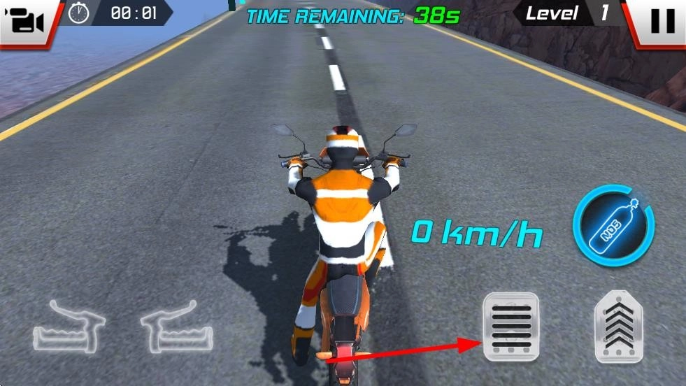 5. 左下虚拟键控制方向,右下按键管理前进/后退,蓝色氮气槽集满后可触发瞬间加速。