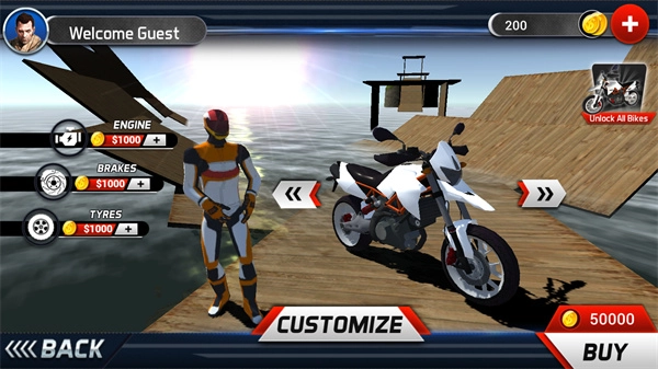 3. 赛事奖励金币优先用于解锁高性能摩托车,其次强化关键部件,高难度关卡对车辆属性有硬性要求。