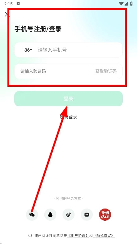 4、输入手机号,输入收到的验证码,点击登录,即可完成注册。
