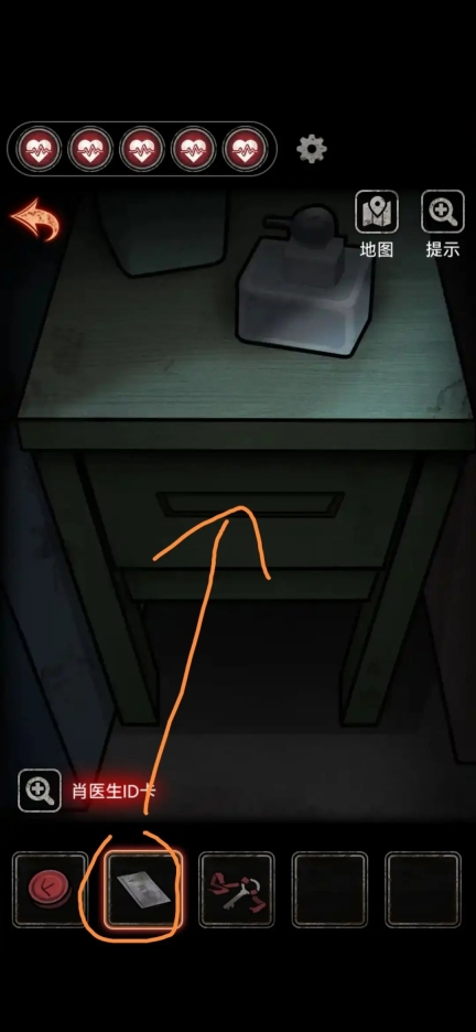 用钥匙打开抽屉柜子,得到刘医生卡,第三章完
