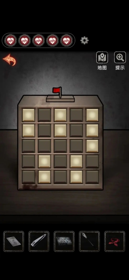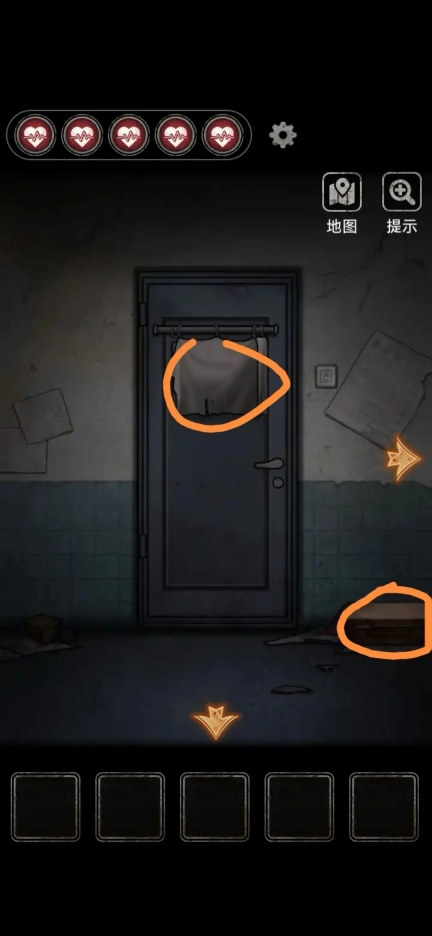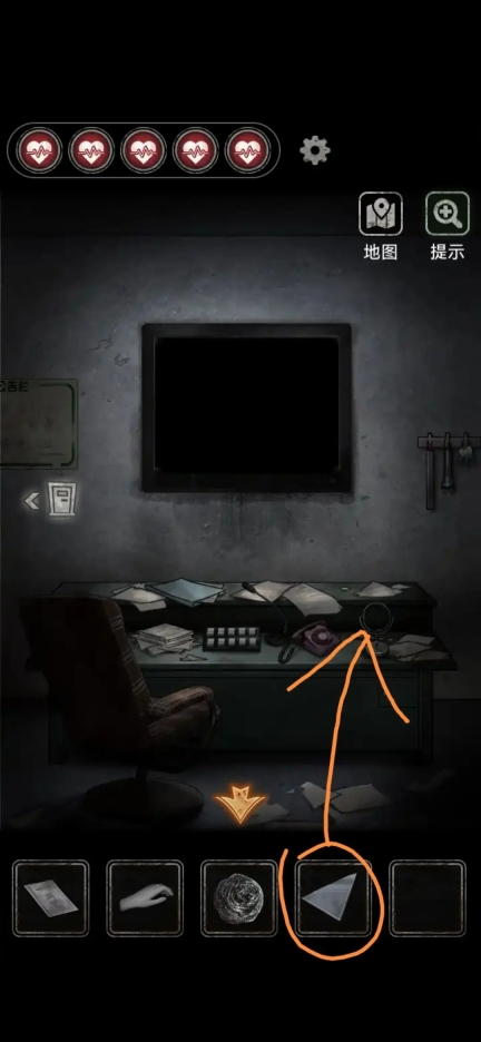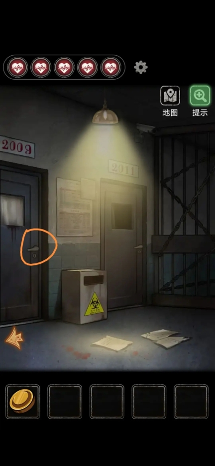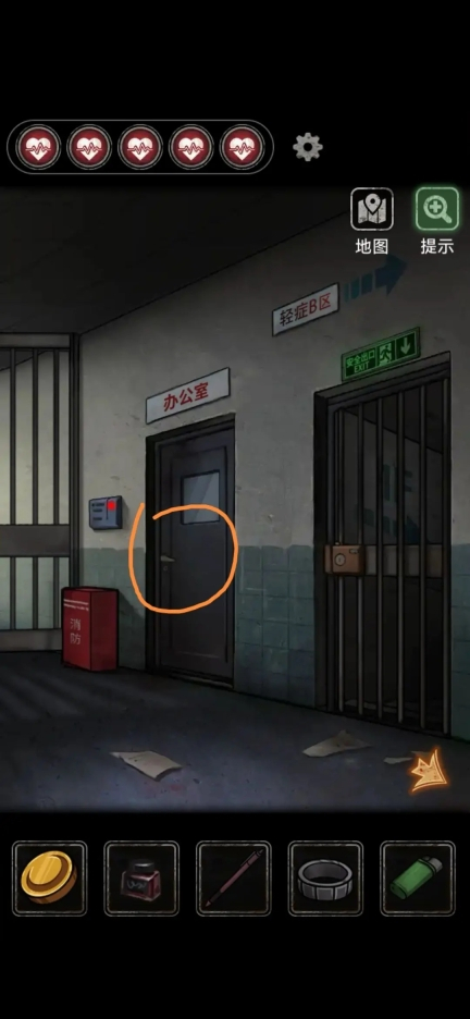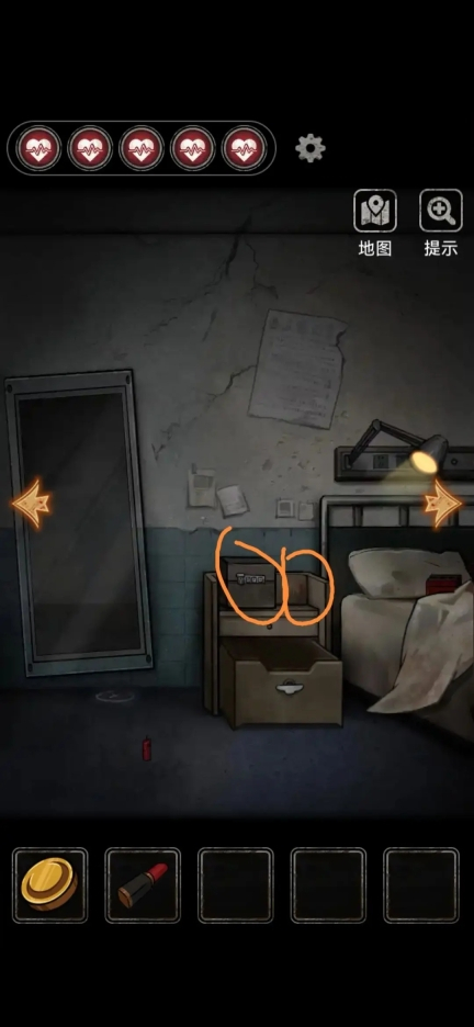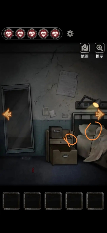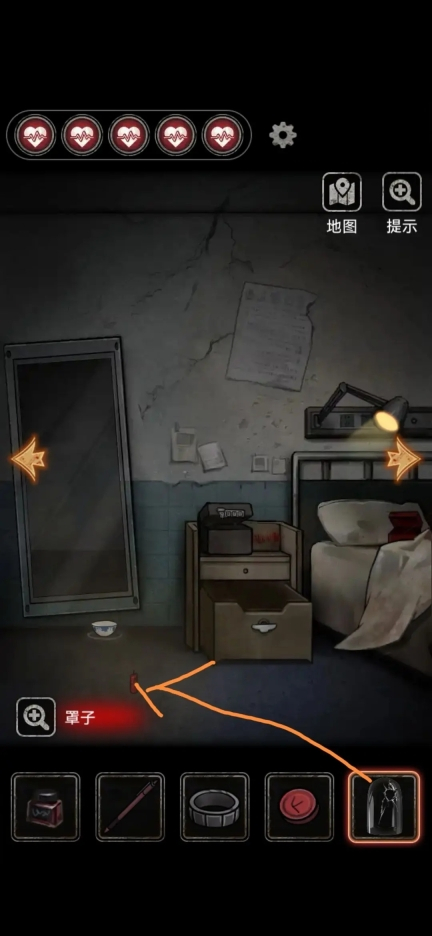 回到检查室,点击开关拉出,用镜子碎片划破布袋得到钥匙