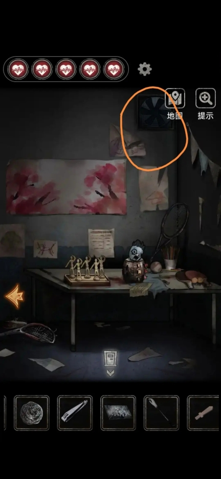 点击右上角启动排风扇,使用钢丝球封住风扇口,再用痒痒挠取出第三把塑料小剑。
