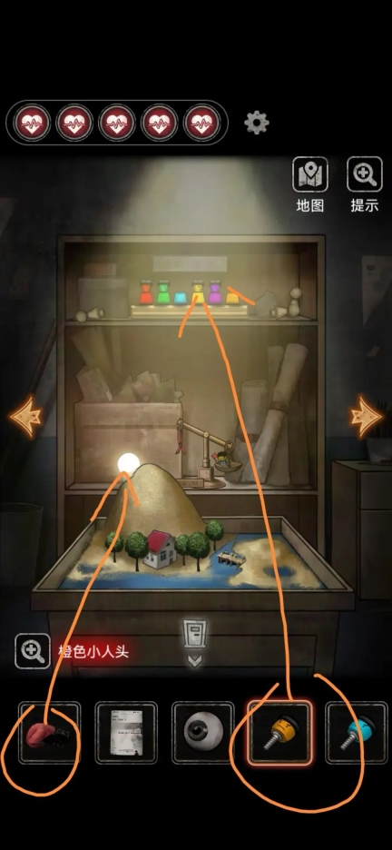 把废旧仪器放于此处点击右上角窗口得到磁铁和骰子提示