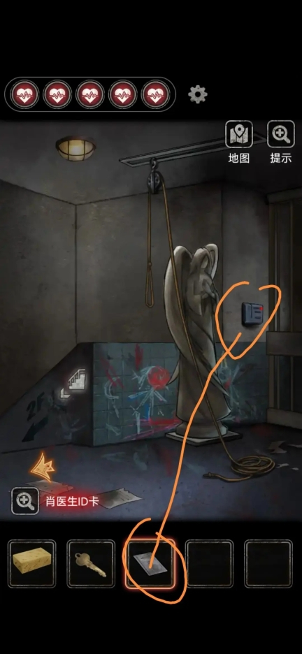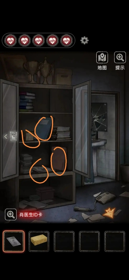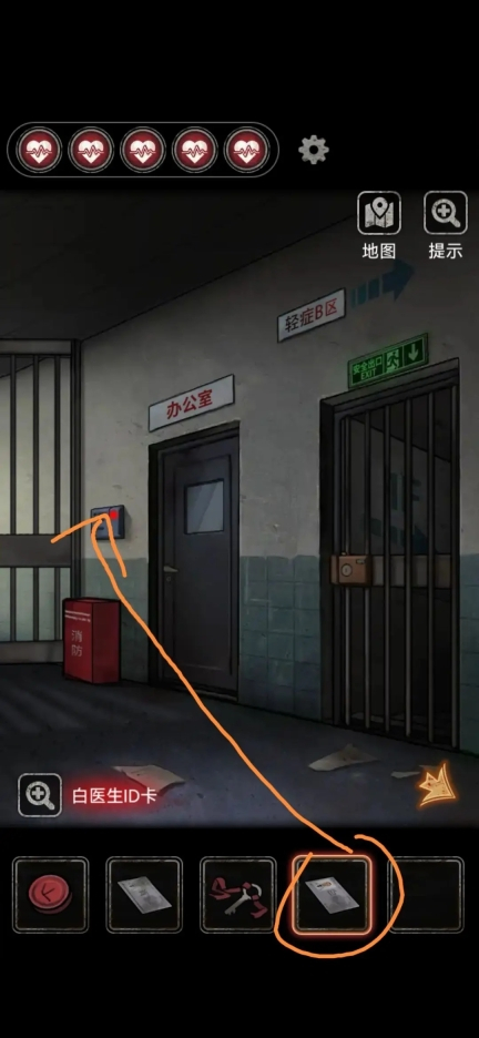 用黄色钥匙打开书柜抽屉得到白医生的卡,用白医生卡刷电子感应器打开门