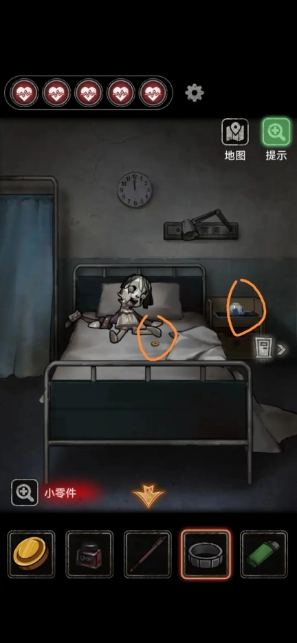 回到治疗室,在图中位置点击移开杂物得到废旧仪器和破损控制器