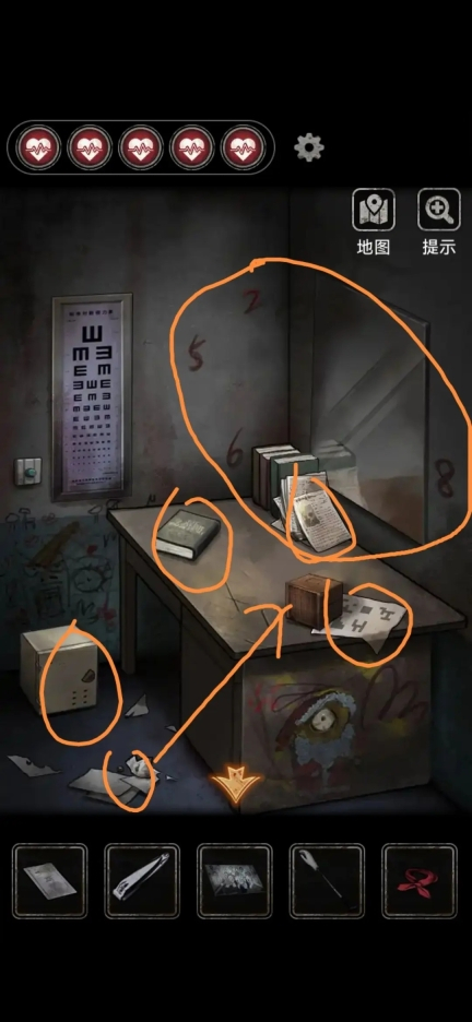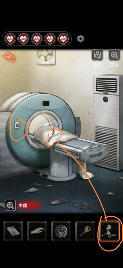 进入检查室,插入U盘后收到提示。返回心理治疗室,将木偶挂在天平的另一端以打开天平下的暗格,从中取得纸条。