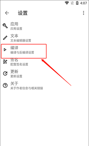1在“Apktool M > 设置”界面中,选择“编译与反编译设置”选项。