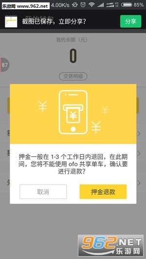 ofo小黄车押金怎么退?ofo小黄车怎么退余额?ofo共享单车又称ofo小黄车,ofo小黄车可随地停放,随时还车,非常方便,越来越多的年轻人热衷于这种共享出行方式。