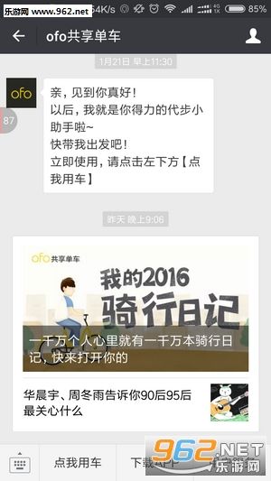 第一步:在微信找到“ofo共享单车”公众号,并单击进去。然后再