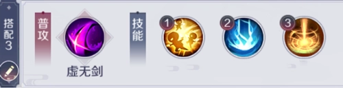 首先普攻方面选择虚无剑,这个是伤害最高的,都选这个就对了,后面都默认选择虚无剑,就不再另外讲了。为了方便讲解,我们按技能顺序,分为1技能,2技能,3技能