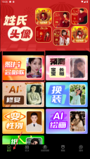 进入首页后,你可以使用姓氏头像、照片会唱歌、AI修复等功能,还能体验换装、变性别、AI绘画等有趣玩法。