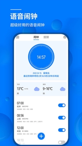 语音闹钟软件是一款移动端时间管理工具,专注于语音提醒与闹钟功能。用户可设定任意时间点的闹钟,支持阳历和农历显示,确保时间精准。通过自定义播报内容,如日期、星期或个性化语句,帮助用户高效安排日程。核心特性包括整点报时、半点提示和摇一摇报时,无需查看手机即可掌握时间。软件集成世界时钟、计时器和秒表,便于旅行或日常任务。尽管功能全面,但需注意权限设置问题:部分安卓设备因系统限制可能导致闹钟失效,初次使用务必开启所有权限。锁屏皮肤和桌面插件提升便捷性,但虚拟按键在老旧机型响应偶有延迟。日历功能标注节假日,辅助规划,但天气数据更新依赖网络稳定性。整体设计简洁,适合各类用户提升生活条理。