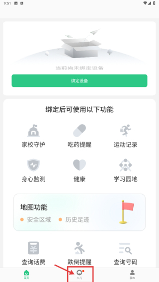 1、打开安全守护2手表应用,点击底部的少儿选项。