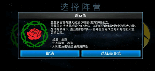 盖亚族主要功能是促进生物量的增长,这在游戏初期似乎没有什么明显效果,到了后期也只是让目标星球更快地变得绿色。因此,我不太建议选择这个阵营。