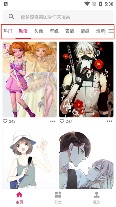 2、进入首页浏览各类风格图片分类,找到喜欢的资源。