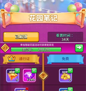 当然除此之外还可以通过花园笔记获取秘宝,花园笔记会随着获取变异花数量而慢慢的升级。当然如果想要快速获取秘宝还可以解锁通行证。与隐秘花园随机碎片不同,花园笔记获取的秘宝碎片都是自选碎片。