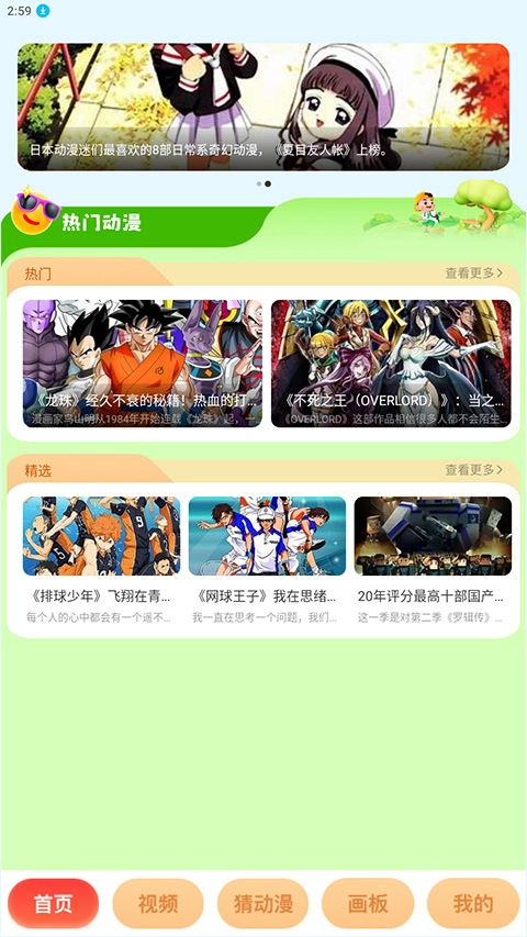 首页推荐栏展示当日热门作品,左右滑动切换分类