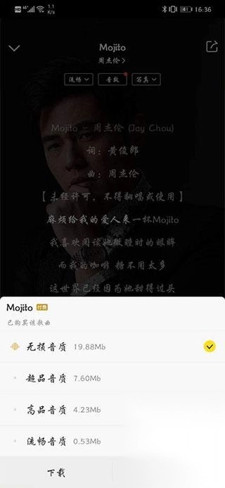 3、点击下载按钮,选择无损音质或者其他