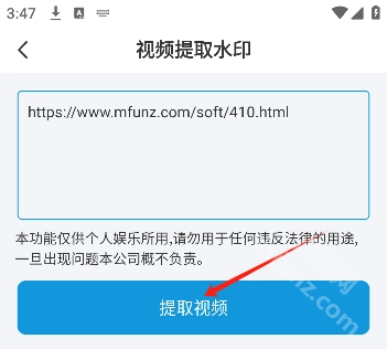 2、复制目标视频链接,粘贴到输入框中,点击提取按钮