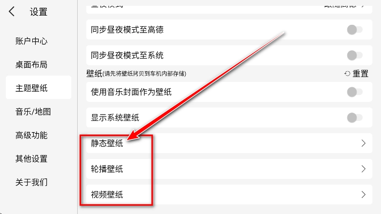 2、进入设置选择主题壁纸,在库中挑选静态、轮播或视频壁纸。