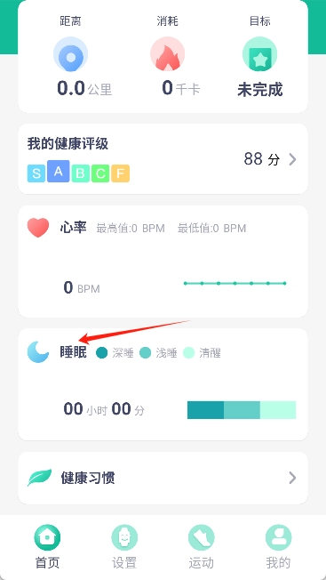 1. 进入App主界面,点击“睡眠”选项启动监测。