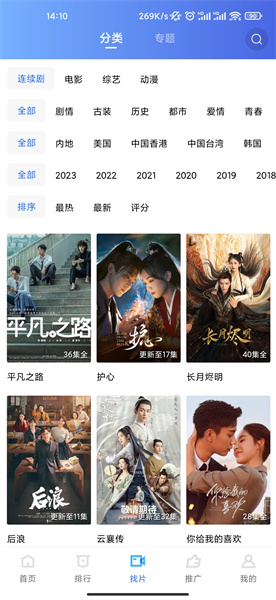 3、通过分类频道可以根据类型、题材、地方、年份、最新、最热、评分等方式筛选出不同的剧作;