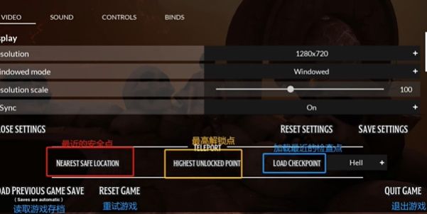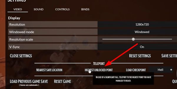 初学者:暂停菜单中的一个选项允许你在重大跌落前返回到你达到的最高点。(如果你想在视频中测试整个游戏很有用)