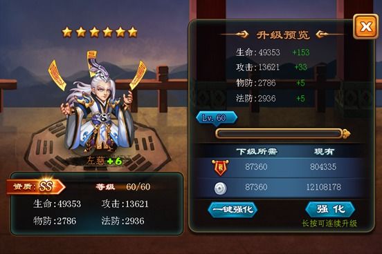 第一步当然是进行武将强化了。武将强化需要花费一定的银币和战功,武将等级越高,属性也就越高,但是不可以超越主角的等级哦。