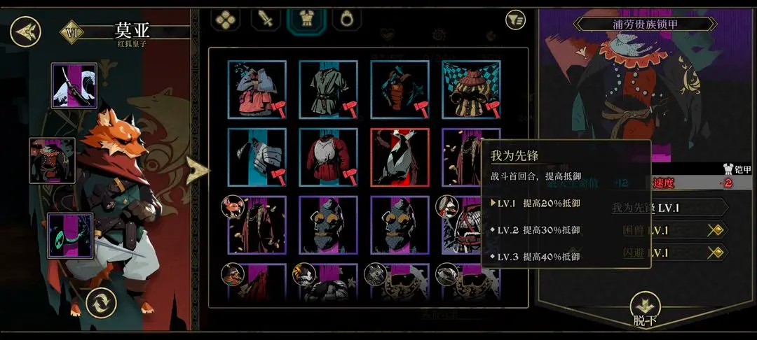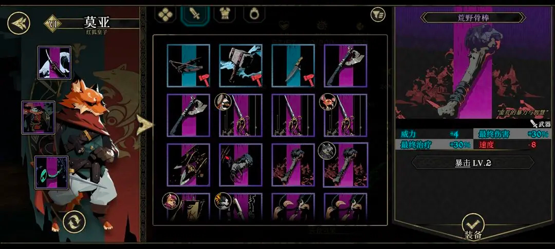2.狐狸武器推荐紫刀拳套等,装备推荐加闪避加抵御这种。饰品推荐绿色笛子(可锻造)或者画板(野外画家掉落),装备词条推荐:精准,暴击,分金,我为先锋,闪避,困兽,自愈,流血破抗等