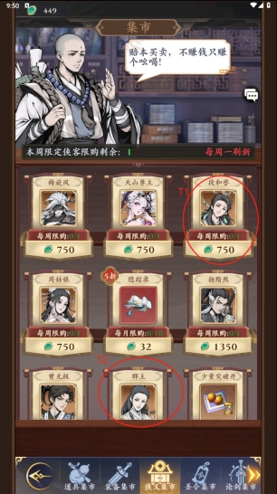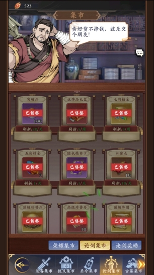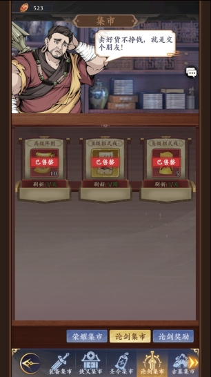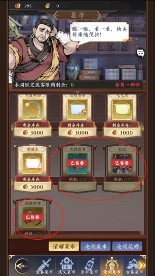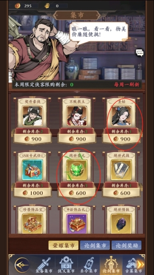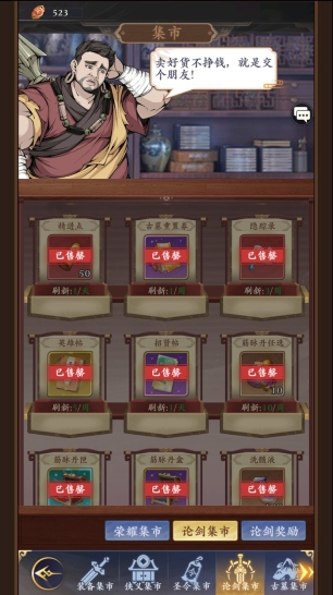 ▼集市用侠义和威望在侠义集市、论剑奖励进行兑换