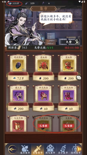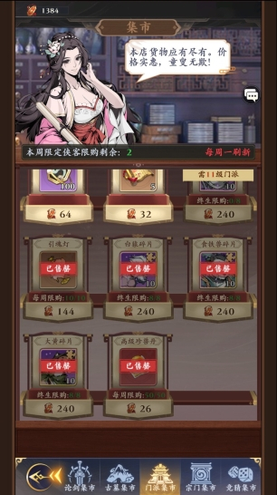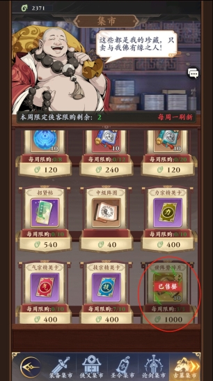 ▼侠义集市使用侠义,可在侠义集市中兑换到秘术点