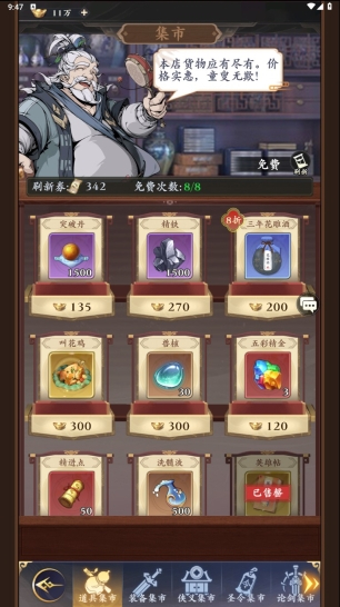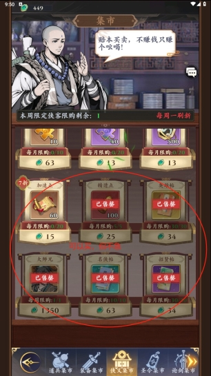 ▼侠义集市使用侠义,可在侠义集市中兑换精进点