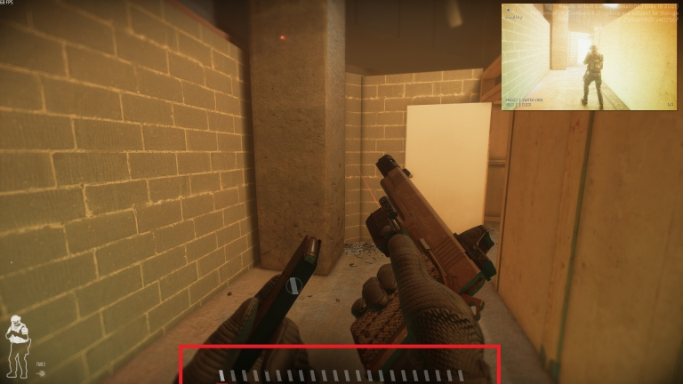 按T即可打开头盔摄像头,这会为小队提供卓越的战术优势,尤其在多个小队同时肃清建筑时会派上大用场。但是摄像头会导致帧数下降,所以要谨慎使用。