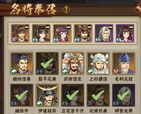 推荐松平元康(大凯),立花言千代(姬武者),织田市(姬武者),北条氏康(长弓武士),斋藤归蝶(长弓武士),中村阿三国(舞姬)这一套阵容。