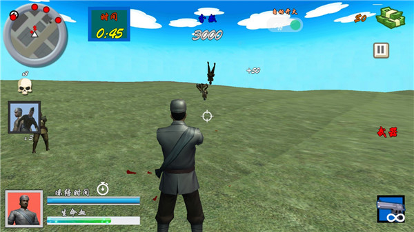 1将镜头对准目标,用右侧的按键射击。这款游戏考验的是你的观察力和反应速度,敌人会如潮水般不断涌来,你的任务就是与他们激战到底。
