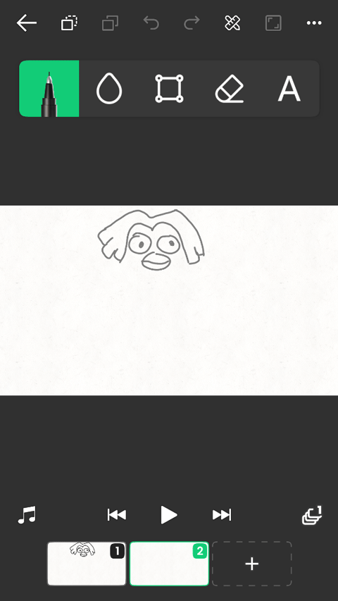 3、接下来就可以开始创作了,在一块画布上画出你想要的样式,接着点击下方再创建一块画出不同的样式,点击下方的播放按钮就可以实现动画了;