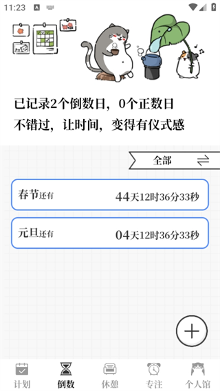 5、倒数板块可以直观的查看设定时限的倒计时;