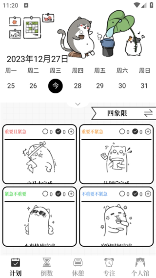 计划喵提供了三种科学的计划管理模式,能够帮助用户区分计划的重要性和紧急程度,合理设定计划完成的时间。此外,还特别设计了直观的四象限计划列表和多种实用的小工具功能,即使在使用手机时也能方便地查看每日计划清单,非常实用。欢迎有需要的朋友来本站体验!
