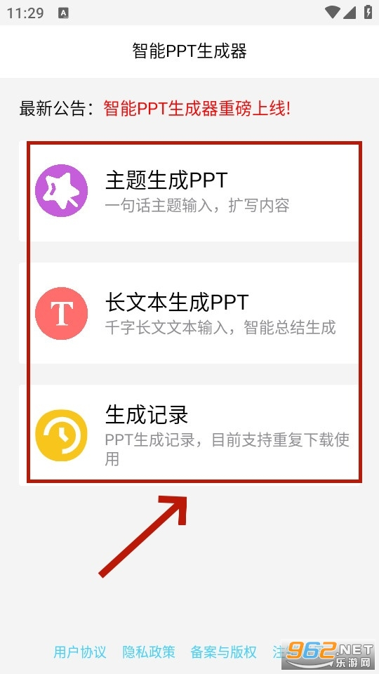 安装并启动智能PPT生成器,点击“同意协议并继续”