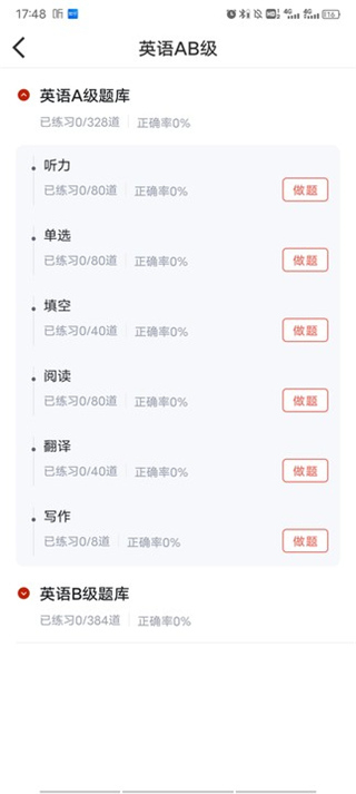 进入首页后,选择题库框,然后选择你想要练习的题库;