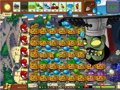 迅速放下辣椒。当然你的植物被毁是避免不了的,他还会用车扔靠后的植物,用脚踩靠前的植物,你必须马上修复阵型。如果你有两个冰菇的话还能继续使用第二个,能多冰他会,这样你的植物就能多打一会,他会死的更快。