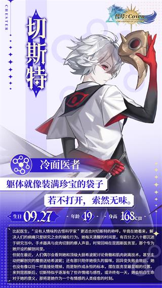 性格:严肃认真,极其理性,不喜欢社交,日常热衷于解剖研究