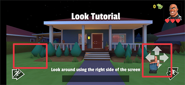 1、并进入游戏后,在左边区域滑动可以移动位置,右边区域滑动则可以移动视角